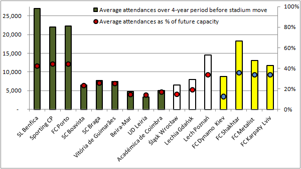 The Polish and Ukrainian clubs that have thus far moved into their new stadiums have shown a lot of promise in terms of attendances.