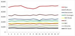 Development of attendances over the season (club with lowest volatility) Total0Shares Share 0 Tweet 0 Pin it 0 Geef een antwoord Reactie annulerenHet e-mailadres wordt niet gepubliceerd. Vereiste velden zijn gemarkeerd met *Reactie Naam * E-mail * Site